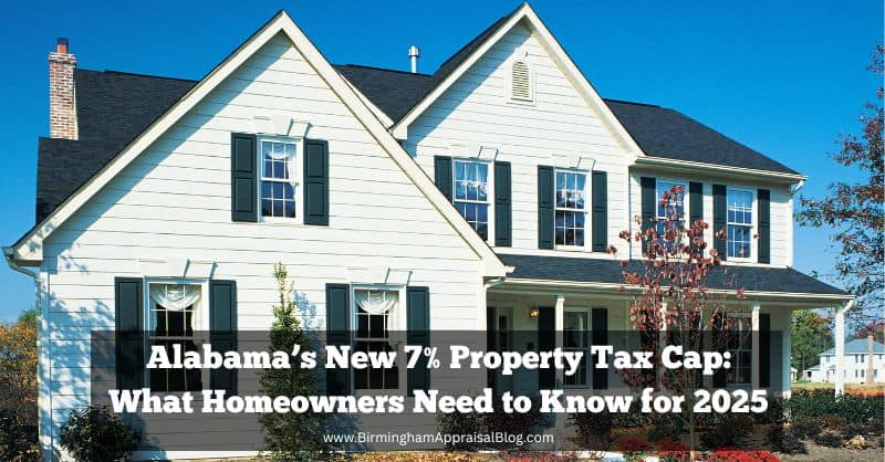 The new Alabama 7% property tax cap can help prevent large swings in property taxes for homeowners. With a known fixed rate of increase, it can help to plan for what property taxes will be each year.